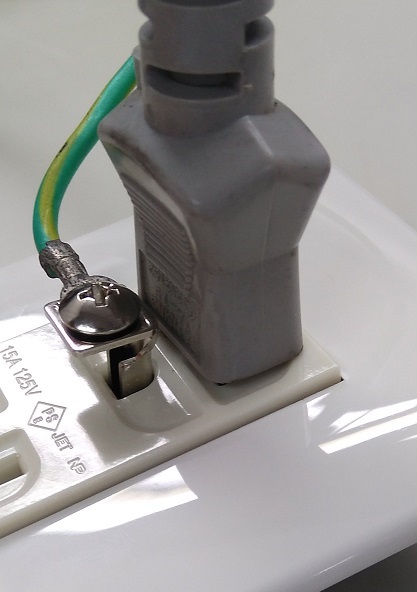 コンセントの接地極に差し込んでおけば、接地極付きコンセントを接地端子付きコンセントのように使用できます。